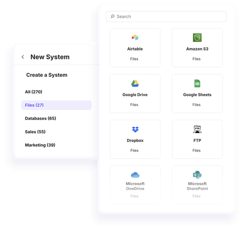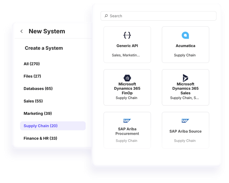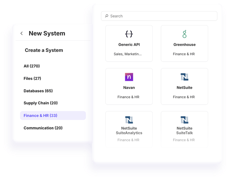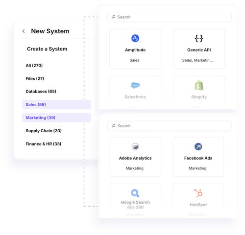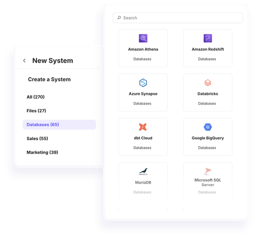 Hundreds of connectors for file systems, databases, business apps, BI dashboards, and more.